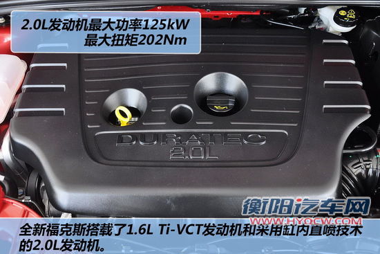 新福克斯采用了全新的1.6升和2.0升汽油发动机。其中全新的1.6升发动机拥有Ti-VCT双独立式凸轴可变正时技术,可实现92kW最大功率,以及159N.m的最大扭矩,在最大功率相比现款1.8L福克斯提升了1kW,同时扭矩也十分接近。另外,新福克斯自动挡全系搭配6速PowerShift双离合变速器。而2.0L的发动机采用了缸内直喷技术,最大功率较之老款2.0L车型高出一头,达到了125kW,峰值扭矩202N·m。同样匹配5速手动或6速双离合变速箱。