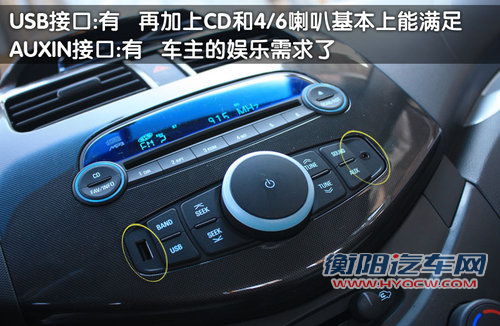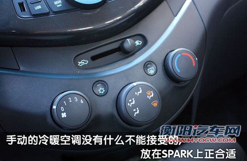 方向盘左侧的影响系统控制区是我比较喜欢的配置,我敢肯定8成以上的驾驶者上车后都会打开音响寻找自己喜欢的节奏。而就设计在指尖的音响按钮可以让驾驶者随时调整音量、选择歌曲。相信驾驶Spark的年轻人更注重感官享受,所以该车的音响设备全是典型音乐爱好者的范儿,音响效果还算令人满意。手动的冷暖空调并不意外,较大的旋钮尺寸操作也很简单。