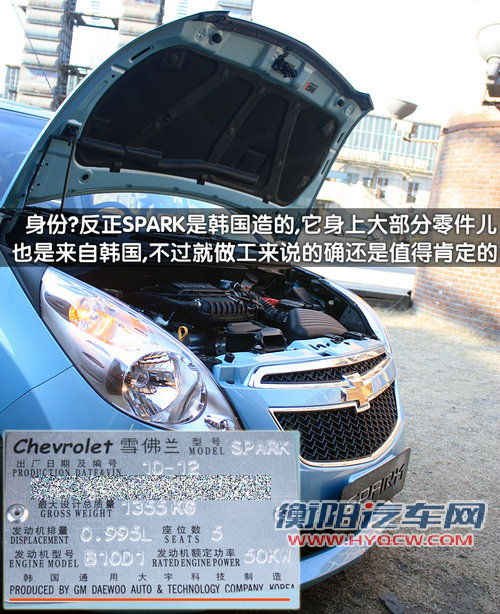 关于Spark的出身?您可看好了这是一部纯正的进口车,这可不是过去通用五菱生产的老Spark,而是来自韩国通用大宇制造的一款“进口车”。Spark配备的1.0升直列4缸引擎技术较为先进,双顶置凸轮轴每缸4气门、可变进气口、终身免维护正时链条驱动技术,在低转速区间内引擎功率和扭矩都会有更好的输出表现。不过50千瓦的最大功率和89牛米的扭矩还是限定了Spark只是一台在城市中的代步的小车而已。