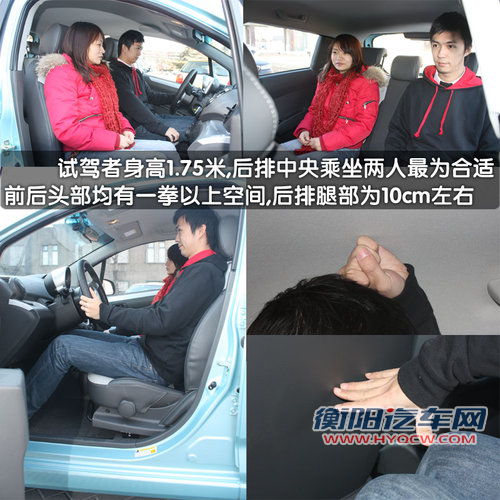 小车的空间究竟如何?经过我们的实际体验我认为身高在1.80米以内的驾驶者和乘坐者最适合它的“胃口”,如果是再大的车恐怕空间就会很局促了。图片中男性模特的身高在1.75米,可以看到他坐在驾驶席以及驾驶席后排的情况下头部和腿部都有着不错的空间表现,而后排横向虽然可以坐下3名乘员但是会非常挤,所以还是乘坐两人更为舒适一些。