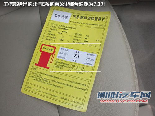 ■小型车:入选车型:北京汽车E系列 1.5L 乐享自动版 2012款