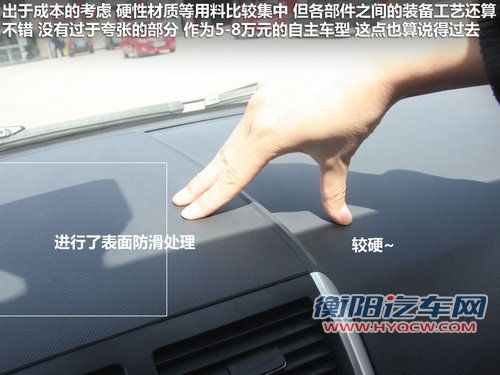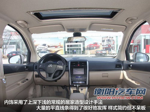 内饰采用了上深下浅的常规的居家造型设计手法,大量的平直线条得到了很好地发挥,样式简约但不呆板。通过编者实际体验来看,出于成本的考虑,硬性材质等用料比较集中,但各部件之间的装备工艺还算不错,没有过于夸张的部分,作为5-8万元的自主车型,这点也算说得过去。