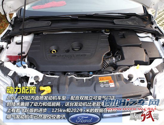 动力方面,新的2.0L直喷发动机配合PowerShift 6速双离合变速器让新福克斯有了质的飞跃。这套动力系统并不强调动力的勃然爆发,更多的是展示他良好平顺性和经济性。智能的双离合变速箱在D挡时换挡积极,平顺性有如CVT变速箱,而进入S挡油门到底,变速箱最高可以容忍连降3挡转速接近红线的冲刺。
