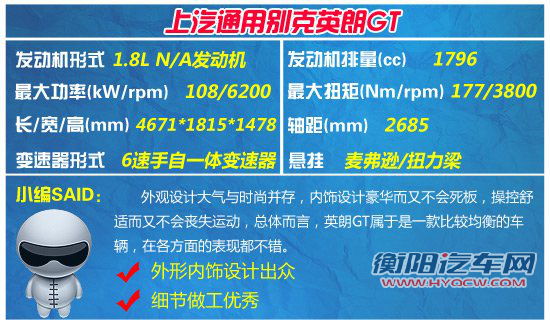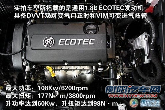 英朗GT的悬挂和动力系统和英朗XT相比没有什么改变。发动机是通用的1.8L ECOTEC发动机,其108Kw的最大功率和177Nm的最大扭矩在1.8L车型中是一个相当不错的数据,其实际表现应该和英朗XT相差无几。