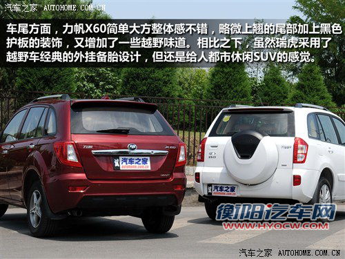 ● 外观对比:力帆X60外观硬朗大气,奇瑞瑞虎精巧时尚。