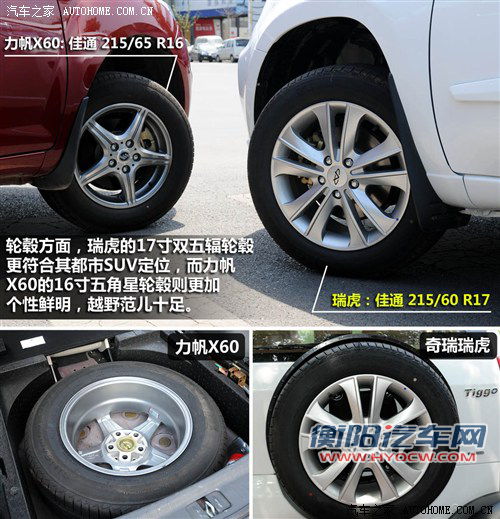 轮毂轮胎方面双方各有千秋,力帆的16英寸五角星轮毂个性鲜明,越野味儿更足;而瑞虎的17寸双五辐轮毂则在尺寸和视觉上都更偏重城市风格。另外两车则不约而同的采用了佳通Comfort SUV520系列轮胎,而且规格尺寸在这个价位上也还说的过去。不仅如此,二者都采用的全尺寸铝合金轮毂备胎也让人感到了厂家的诚意。