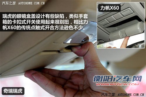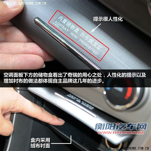 细节方面,奇瑞瑞虎尽管在空调面板下方的储物格设计的很不错,但也不乏出现像眼镜盒那种失败的设计,不仅开合方式比较繁琐,而且打开时还比较费劲,这对于喜欢美甲的女生而言,如此紧密的设计对你的指甲将是一次严重的考验。