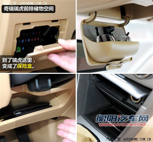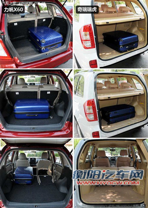 ● 储物空间对比:双方储物空间平分秋色,力帆X60使用便利性好于奇瑞瑞虎。