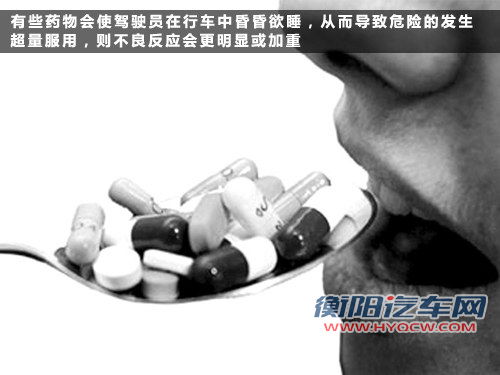 日常生活中,生病是很平常的事儿,然而在服用药物后,尽量不要开车。有些药物会使驾驶员在行车中昏昏欲睡,从而导致危险的发生。包括镇静、安眠、抗抑郁、抗焦虑、止痛解痉、抗过敏、降血压、抗心律失常、抗心绞痛等药物。镇静类药物,如安定、安宁等;抗抑郁、焦虑类药物,如丙咪嗪、多虑平等;镇痛类药物,如杜冷丁、吗啡、可待因等;抗高血压类药物以及降血糖类药物,如复方降压片、优降糖等;抗过敏类药物,如扑尔敏等;止痛解痉类药物,如阿托品、氢溴酸东莨菪碱和颠茄片;抗心绞痛类药,如心痛定、消心痛、硝酸甘油制剂等,它们均有可能诱发不同程度的头昏、眩晕、视物模糊、视力下降、乏力、嗜睡、倦怠、注意力分散和反应迟钝等不良反应,如果超量服用,则不良反应会更明显或加重。