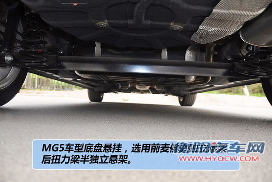 底盘方面,MG5和荣威350一样都是非独立悬挂形式,理论和结构上略低于MG6,不过和荣威350不同的是,MG5将在悬挂调教与设定上更为偏向硬朗和运动化。具体来说,MG5底盘整体感很强,无论是在平直还是坑洼路况,都不会有多余的杂音。悬挂对细微的震动过滤的非常彻底,舒适性得到了很好的照顾。