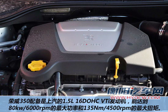 荣威350搭载一台1.5升直列四缸自然吸气发动机,最大功率80kw/6000rpm,峰值扭矩135N?m/4500rpm,匹配爱信4AT变速箱,单从动力数据来看,不算抢眼。