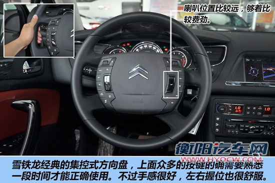 雪铁龙C5的内饰则个性了许多,这不禁又让人们想起了“法式风格”。中控台并没有像508那样布满了按键,整体简洁了许多,但这并不代表C5就会在功能性上有所妥协。这些功能操作全部被搬到了方向盘上,布满按键的多功能方向盘中间位置是固定不动的,转动方向盘时只有方向盘外圈单独旋转,除了新颖独特之外也带来了一些使用习惯上的转变。