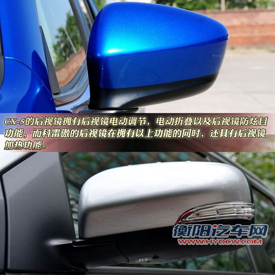在后视镜方面,CX-5的后视镜拥有后视镜电动调节,电动折叠以及后视镜防炫目功能,而科雷傲的后视镜在拥有以上功能的同时,还拥有后视镜加热功能,在功能上取得了稍许领先。在造型上,CX-5的后视镜线条较为刚硬,而科雷傲的后视镜则几乎是方形的。