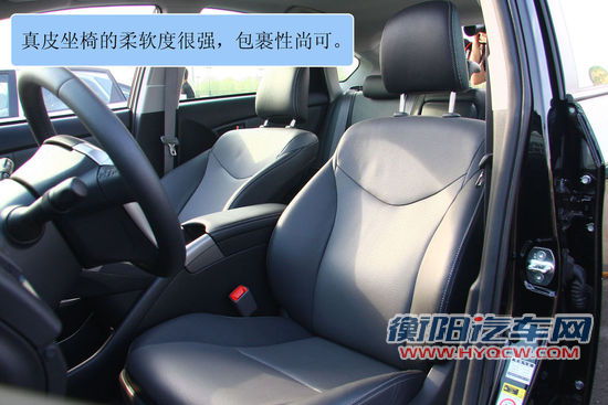 相对而言,丰田普锐斯的真皮座椅看上去就比较普通,完全是家庭轿车的感觉,但这款车的座椅质地非常柔软,舒适性也非常不错,这是丰田的座椅一贯风格。
