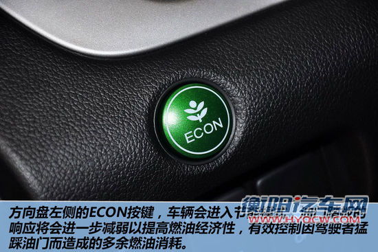 Econ模式主要是通过控制ECU、发动机、变速器,使其完全依照最低燃油消耗的模式执行驾驶者的操作,这是从新思域中移植过来的配置。