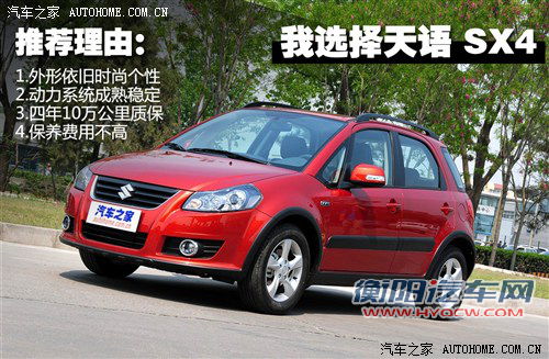 谁说成熟车型就一定要老气横秋,我推荐的天语SX4从2006年底上市至今也有超过五年的时间了,不过虎头虎脑的Cross外形至今看起来也不算过时,而且相比于福克斯、速腾这些主流的合资紧凑型车,它的售价也更亲民,比较符合咱们今天十万成熟车型的主题。