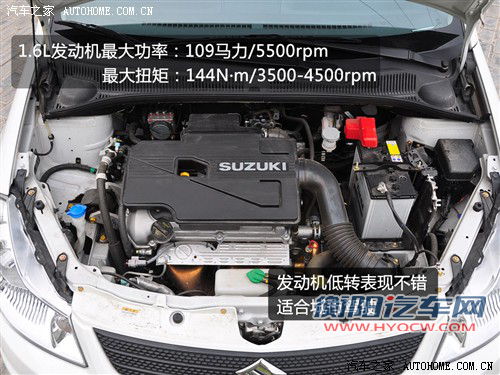 一款成熟的车型首先要有一套值得信赖的动力系统,SX4目前共有1.6L和1.8L两款自然吸气发动机可选,考虑到我们的购车预算在十万左右,所以1.6L发动机自然是唯一的选择。这款代号为MA16的四缸自然吸气发动机配有VVT可变气门正时技术,无论是动力表现还是燃油经济性都有不错的表现,满足日常家庭使用没有问题。