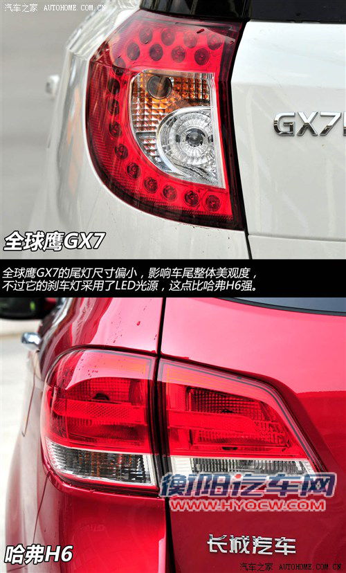 ■ 外观:哈弗H6尺寸更大 全球鹰GX7线条更阳刚