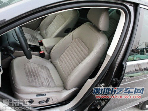 迈腾的车内部分也是人机工程重点,中控设计部分与老迈腾基本相似,只是细节有些稍微调整。样式很大众化风格,立体感比帕萨特强。仪表彻底是大众家族风格,简单实用,黑底白字绝无花哨,彩色的液晶行车电脑是最大亮色,除显示传统的油耗种类,电子时速表等信息外,它还加入了指南针、导航路线显示等功能。 大众的原厂导航并不人性化,价格也不算经济,不过设计还是很简单实用,各种功能齐全,空调以音响面板按键旋钮做工不错,阻尼一致,伸手可及。令人喜欢的是,迈腾的中控顶部全是软性材质,手感很不错,就和储物格布置有绒布一样,都是比较厚道的行为。