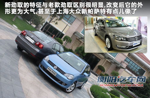 新劲取秉承大众的家族设计理念,采用熏黑前大灯,中网及保险杠采用了新的设计造型,下进气格栅则完全是标准的新一代POLO车型风格,中部带有U型的镀铬装饰条,三厢版依然采用圆形雾灯镶嵌镀铬装饰圈。