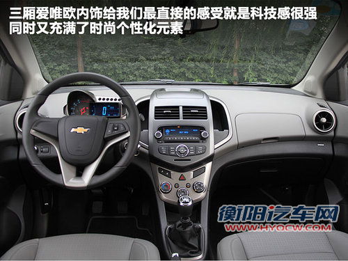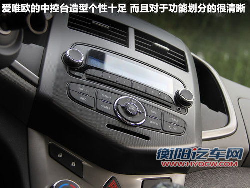爱唯欧的操控台造型个性十足,而且对于功能行的区分很清晰。仔细看整个控制面板的设计好像一个汽车人脸部造型,这种设计风格正在逐渐演变成雪佛兰全系车型标志。爱唯欧三厢配有支持Aux In音源输入的6喇叭音响系统,可搭载如iPod等外接音源播放器,以及CD等音频载体,丰富了使用者的娱乐空间。无论音频区还是空调区,造型设计也都延续了汽车人的风格。