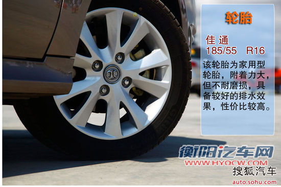 轮胎方面,北京汽车E系列采用175/65 R14尺寸,十幅轮毂动感大气。低配车型采用钢制轮毂,高配车型可选配尺寸较大的185/55 R15车轮尺寸。