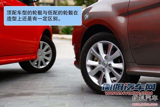 车轮方面,1.5L车型采用185/65 R15的尺寸,1.3L车型为185/70 R14,都为佳通品牌。双四幅轮毂造型很有凹凸质感,不过轮毂看起来还是有点小。