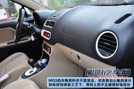 MG3内饰设计简洁时尚,我们在其中发现了很多苹果的元素。整个内饰多采用椭圆形模块加圆形的按键,并且为白色,十分的时尚。内饰配色有上深下浅和纯黑色两种,这种时尚风格还是适用于纯黑色内饰。