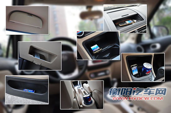 空间上,前门板的容积还是比较大,但后门板仅有一个杯托的位置。中控台上的储物空间一般,档把前有一个空间很扁的储物槽和两个杯托,实用性一般。副驾驶位置,也就是中控台侧面设置了一个储物的网兜,适合放票据等小件物品。