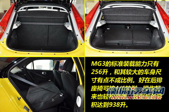 行李箱同样是4比6放倒,最小容积为256L,最大容积为938L,装载能力略优于北汽E系列。而MG3其它细节也很到位,左右遮阳板都配备了化妆镜,明显为了照顾到爱美,注重形象的年轻人。