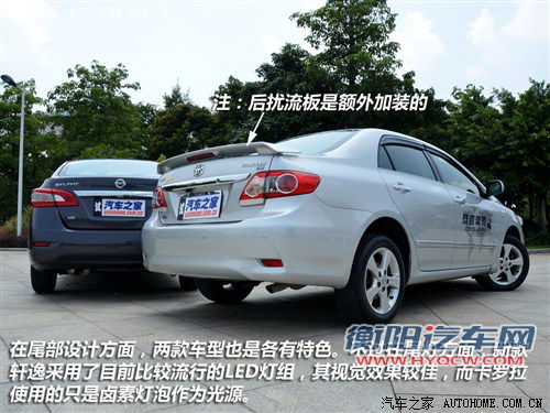 | 注:本期对比的轩逸加装了原厂导航、倒车影像;而卡罗拉车型中导航、泊车辅助、及后扰流板均为加装,故文章中不涉及这些内容的对比 | ||