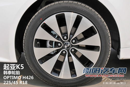 相比之下,起亚K5的车轮就霸气许多,轮毂的样子我们就不多说了,值得注意是实际大小比照片上更大,225/45 R18的尺寸也相当厚道,最让人纠结也许就是韩泰轮胎了,H426只是主打性能和舒适的中低端产品,与运动没有半毛钱关系。