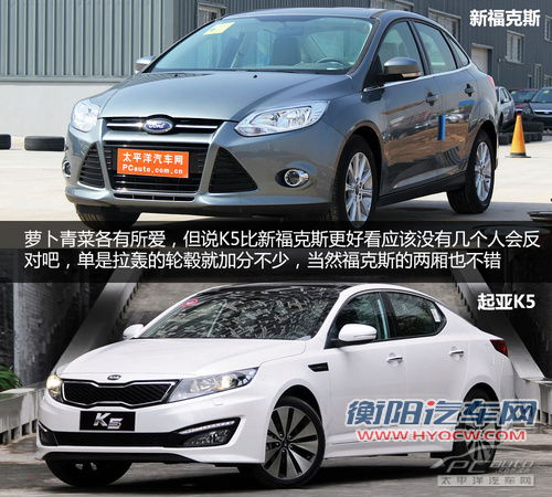 ●长相对比,您说了算选美这种事,真心是吃力不讨好的,个人而言更喜欢K5,两厢的新福克斯不错,三厢的就总觉差点什么。新福克斯作为国内卖得最好的紧凑级车之一,其年轻化的外形一直是讨好消费者的有力武器,新款较之前运动风格有增无减,采用了新的家族设计,前脸变得更激进,侧面线条也更流畅。