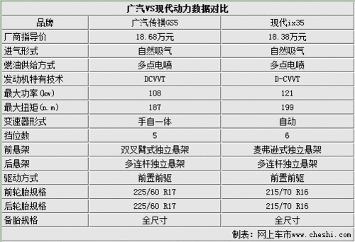 在动力数据对比方面,两车均采用了自然吸气式的发动机,最大输出功率及最大扭矩方面两者相差不多,而在变速箱技术方面,广汽GS5采用了5速手自一体自动变速箱,但现代ix35却采用了6速的自动变速箱,在节油反面更进一步。