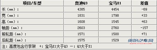 从上表可以看出,奥迪只在外观宽度上占得一点优势,而在轴距与高度上远远不如宝马X1,在轴距方面竟然相差了高达157mm,可想而知在乘坐空间上会远远不如宝马X1。而在Q3与X1在前后轮距的差别也会明显的体现在后排横向乘坐空间上,别且在稳定性上会更出色。