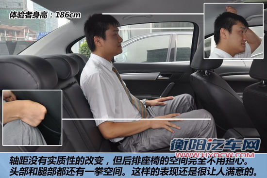 新朗逸轴距为2610mm,这表明它的空间并没有实质性的提升,不过你可以发现其后排座椅坐垫长度得以改善,从而大腿支撑更为理想。同时,座椅的形状和材质都比老款有明显进步,最少无论是视觉还是乘坐感受都不错。对于180cm身高男性来说,后排腿部约一拳,头部约2-3指,基本还是够用了。