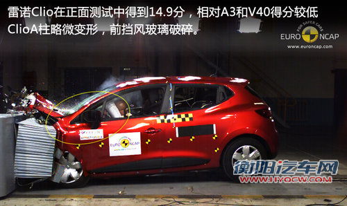 正面碰撞测试雷诺CLIO得分最低 A柱出现小幅变形