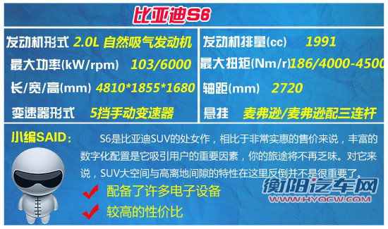 推荐车型:比亚迪S6厂商指导价:8.98-13.69万元
