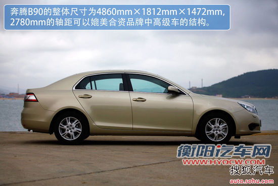 B90侧面大车身短车尾的设计为后排头部争取了更多空间,厚实的C柱视觉效果上比奔腾B70要协调很多。上下双腰线更简洁,没有特别明显的凹凸之感,没有特别出彩之处。B90的车身长宽高分别为4860x1812x1472mm,轴距为2780mm,算是B级轿车非常标准的尺寸。