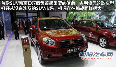 早在2010年北京车展,吉利汽车就展出了一款SUV车型,在国内SUV市场如火如荼之际,吉利汽车并不想被抛下,正式宣布进军SUV领域。2011上海车展,吉利首款SUV帝豪EX7同样以量产身份再次亮相,今年8月份正式上市,预计售价10-15万元左右。最新消息显示,帝豪EX7有可能变身全球鹰GX7。当然仍不排除全球鹰GX7是帝豪EX7的低配版,因为在上市前所有的变数都是可能的。