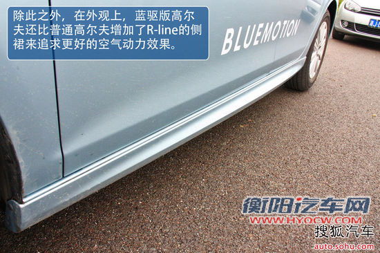 蓝驱版高尔夫六:自动启停 动能回收等高尔夫蓝驱版与普通版外观基本没有变化,除了它特有冰川蓝的颜色,还有车身上的蓝驱标志以外,你很难再找出它究竟和普通高尔夫有什么不同了。高尔夫蓝驱版的自动启停技术和低滚动阻力轮胎是它的两个节油关键点,而再生制动系统当然也功不可没。
