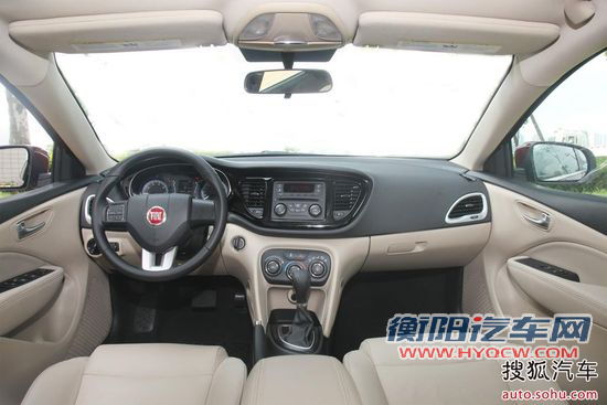 菲翔内饰和国内常见车型不同,它采用了不规则大包围仪表台, 整体偏向驾驶员一侧,人性化十足。内饰的设计很简洁,与道奇Dart依旧有着高相似度,大面积软性材料采用十分厚道,这也体现了菲亚特这次重返中国的决心,其方向盘和仪表都充满了美式风格,尽管不算精致,但十分养眼和协调。