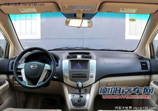 比亚迪S6中控台使用大量平直线条,上深下浅配有银色装饰的内饰简洁大方,上深下浅的内饰配色方案家用挺温馨的。换句话说除开配置带来功能以外,基本上我们是无法通过中控整体设计来区别不同版本的车款。但是中控彩色液晶屏只是出现在2.0MT尊贵型以及顶配的2.4AT尊享型上,这个屏幕包含了7英寸显示触摸屏、移动数字电视、GPS导航、车载蓝牙还有单碟DVD和可视倒车功能。