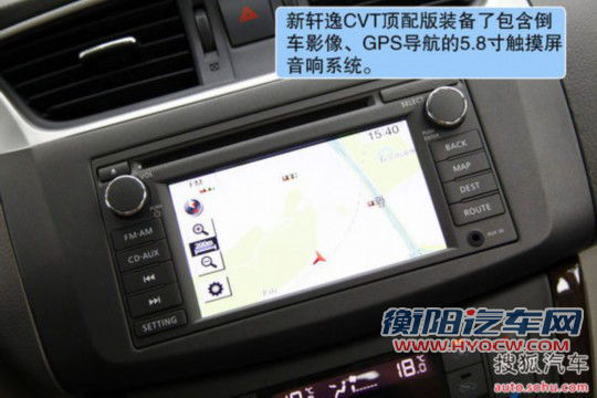 配置方面,新轩逸的主流配置可谓是一应俱全,配备了自动空调、电动座椅、后排出风口、自动大灯、定速巡航以及智能钥匙和一键启动等设置,有了它上车不用在掏钥匙,但是小编宁愿用它去换四门一键升窗设置,在同级别车型中很有竞争力,但美中不足的是全系不能选装VDC的电子稳定程序,集成的倒车影像、多媒体影音等功能的导航屏幕没有达到整体水平,界面稍显简陋、阳光强烈时画面看不清楚,而且AUX输入接口的位置也不太方便。不过总体来看新轩逸的表现完全可以满足消费者的期待。