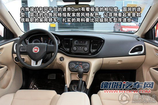 虽然菲翔和更运动的道奇Dart出自同平台,两者也有着相似度极高的内饰造型,不过菲翔更多的是将颜色搭配倾向于家居使用。米黑双色和亮黑色钢琴漆饰板的组合,让它精致不张扬,车内大量软性材质的使用,能够获得消费者的认可。中控台和仪表盘的连体造型,简洁实用,阅读信息还是很方便的。