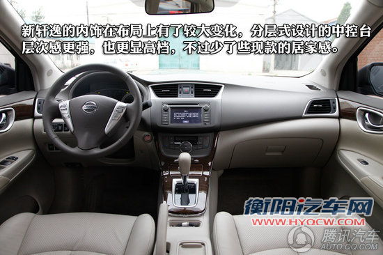 新轩逸的内饰在布局上有了较大变化,分层式设计的中控台层级感更强,也更显高档,不过少了些现款的居家感。方向盘更换为日产的家族式三幅方向盘,主流的多功能控制键我们都可以看到。新轩逸加入了CARWINGS车载信息服务系统,拥有服务中心呼叫按钮以及“SOS”紧急求助按钮,在需要帮助的时候按下相应按键就能联系人工得到相关的服务。