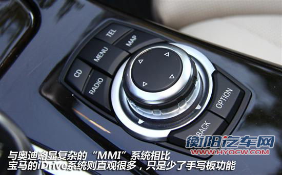 与科技感十足的新奥迪A6L中控台相比,宝马5系的中控布局则显得简洁很多,与座椅颜色一致的装饰条将中控台分为上下两部分,上部为音响控制单元,下部则负责空调调节,各种功能按键非常简单、明了,即使初次使用也很容易上手。