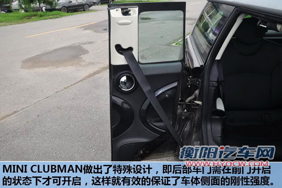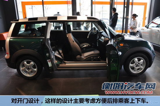 MINICLUBMAN采用了对开门设计,这样的设计主要考虑方便后排乘客上/下车,同时也做出了特殊设计,即后部车门需在前门开启的状态下才可开启,这样就有效的保证了车体侧面的刚性强度。而更加个性的是MINICLUBMAN的尾门也采用了类似货车的对开门式设计,这样的尾门也是非常实用的设计。