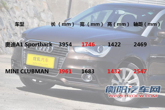 既然已经明确了奥迪A1Sportback 的对手就是MINICLUBMAN,那么我们就先来看看两车参数的比较,虽然A1已经是奥迪家族最小的车型,在长宽高、轴距这4个主要参数上,除了宽度占优外,其他参数落后于MINICLUBMAN。