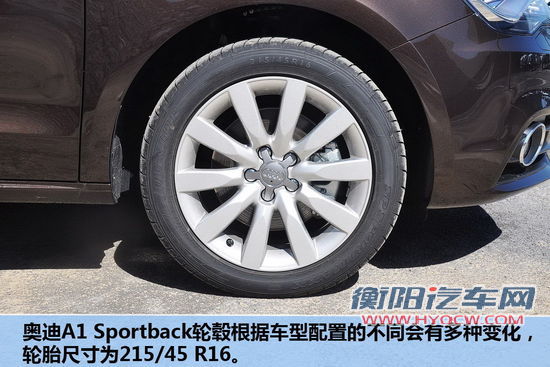 奥迪A1Sportback轮毂根据车型配置的不同会有变化,轮胎尺寸为215/45 R16。而MINICLUBMAN轮毂也有多种选择,轮胎品牌以马牌和普利司通为主,轮胎尺寸为205/45 R17。